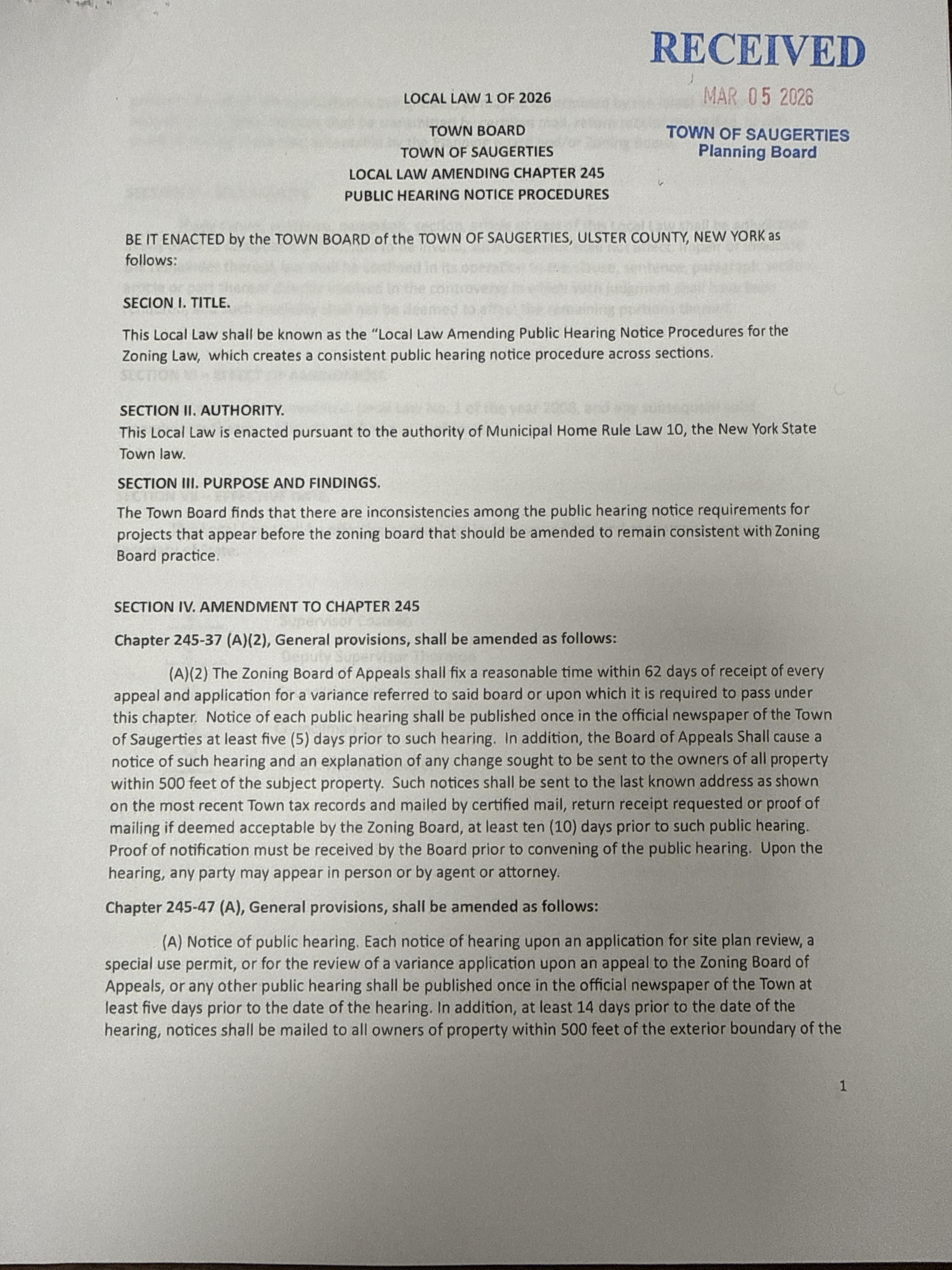 At the November 2025 Planning Board meeting, the Board very particularly said that whenever the Public Hearing continued, the applicant should re-notify. https://saugertiesny.gov/application/files/8517/6599/4171/November_18_2025_-_Meeting_Minutes.pdf